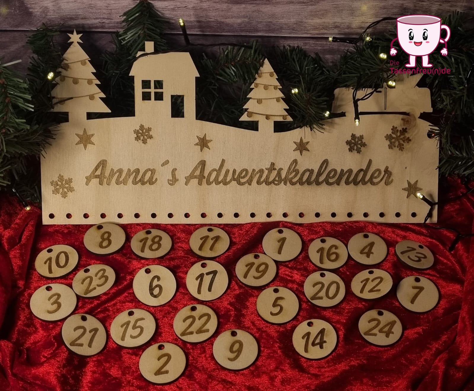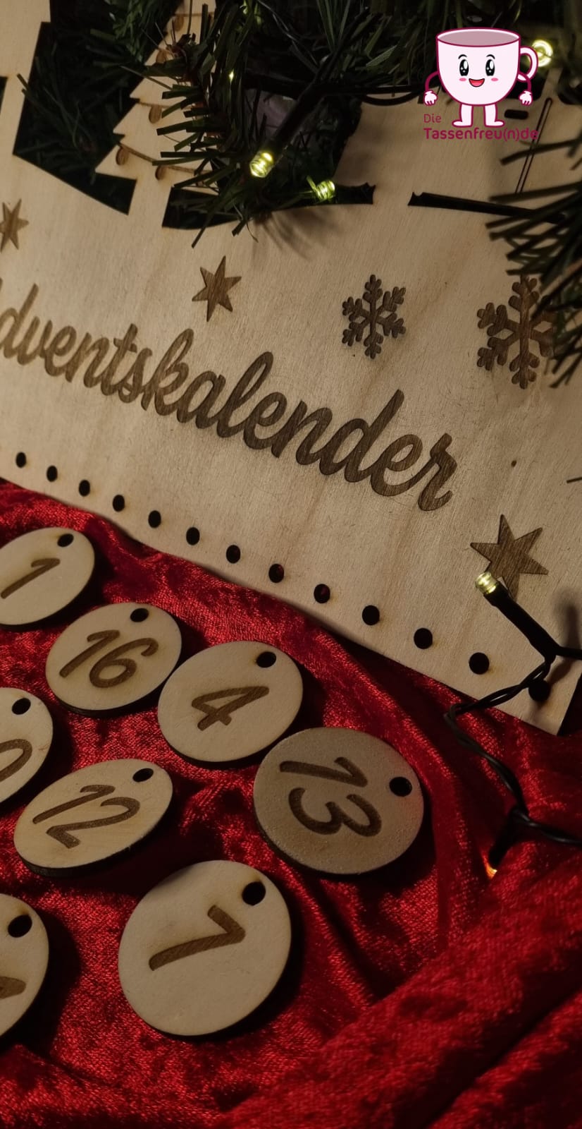Adventskalender wird aus Holz geschnitten und mit den gewünschten Daten präzise per Laser graviert.